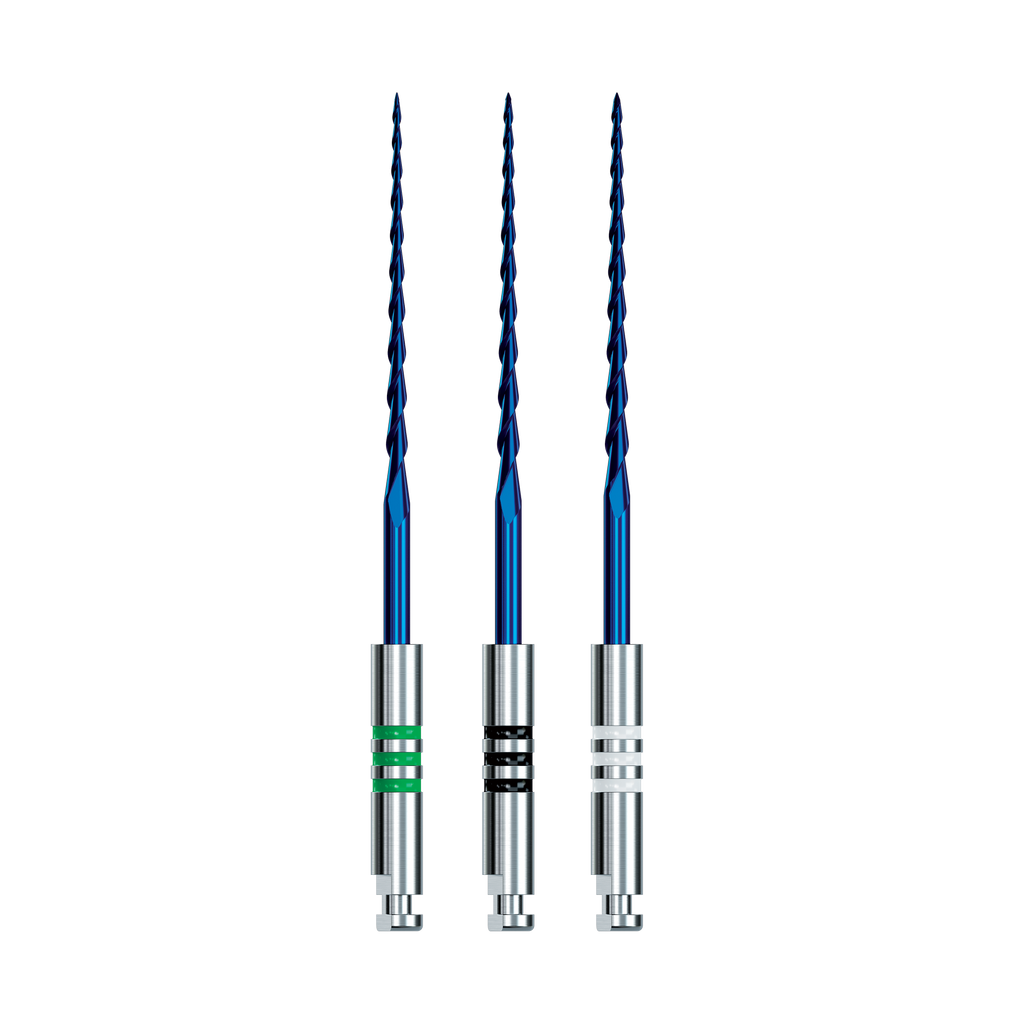 The Endostar E3 Azure Big is an extension of the Endostar E3 Azure Basic system, designed specifically for shaping wide canals where preparation to size 30 is not sufficient. It is not a standalone rotary system and should always be preceded by initial preparation with Endostar E3 Azure Basic or Endostar E3 Basic files.