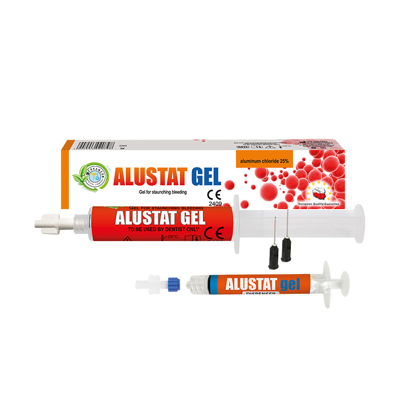 ALUSTAT GEL is used during dental treatment to control slight gingival bleeding. The aluminium chloride provides a vasoconstrictive effect on small blood vessels, reducing gingival swelling and minor bleeding.